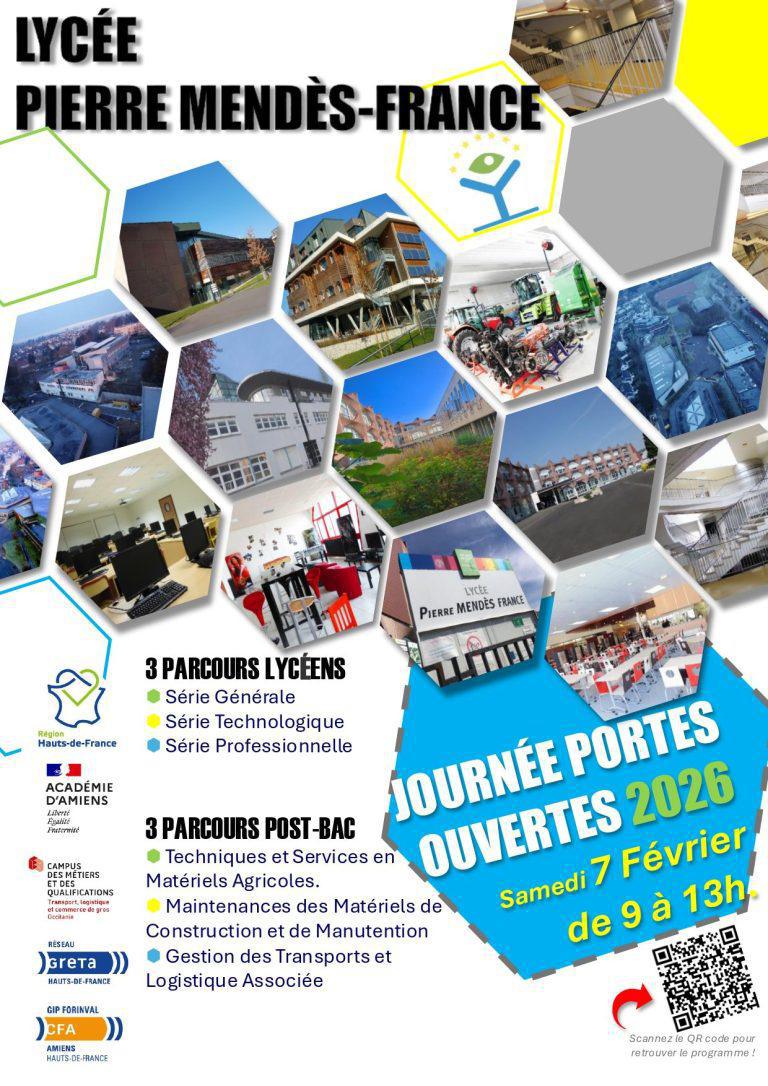 Le lycée Pierre Mendès France de Péronne vous ouvre ses portes le samedi 7 février 2026 de 9h à 13h pour une journée spéciale placée sous le signe de la découverte et de l’échange !